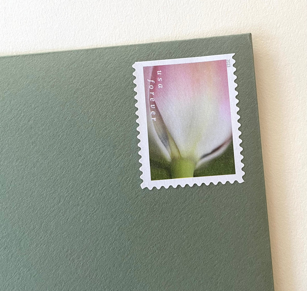 These stamps are perfectly suitable for use as postage at the current Forever 1st class postage rate. These beautiful botanical stamps will add an enchanting personalized touch to your garden wedding invitations, mauve save the dates, or thank you cards.