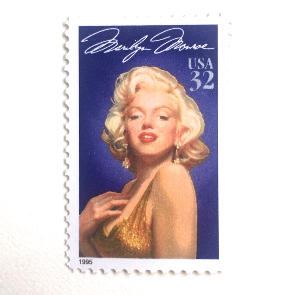 10 Marilyn Monroe Vintage Postage Stamps // Ten Classic Movie Star 32 Cent Blue Postage Stamps for Collecting or Mailing