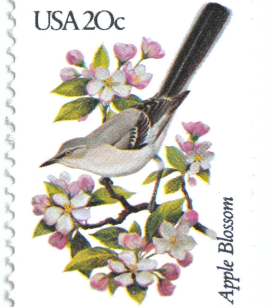 10 Mockingbird Vintage Postage Stamps Apple Blossom // Arkansas State Bird and State Flower Unused Stamps for Mailing