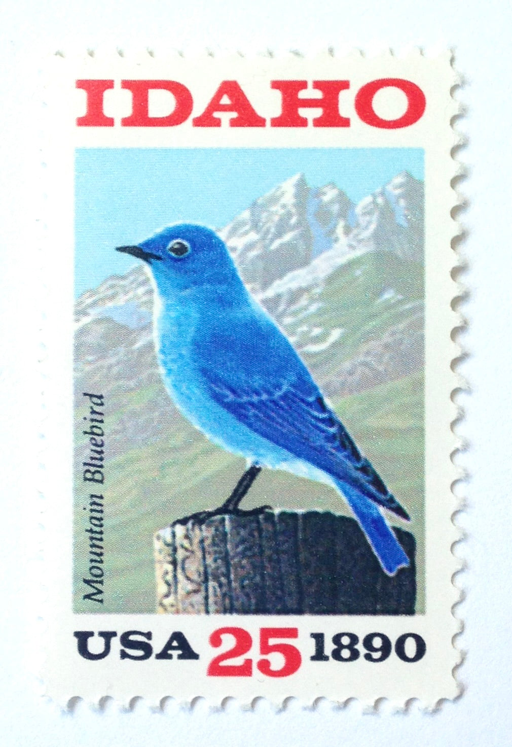10 Mountain Bluebird Vintage Idaho Postage Stamps Unused Mountain Bluebird // Idaho State Bird and Sawtooth Mountains