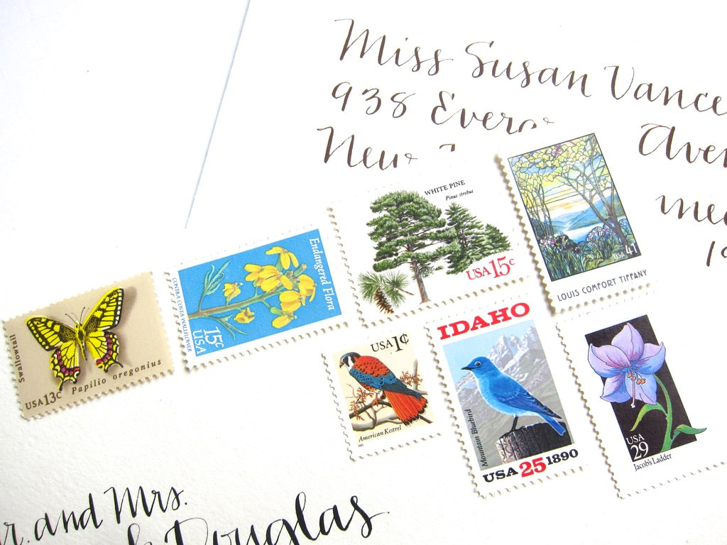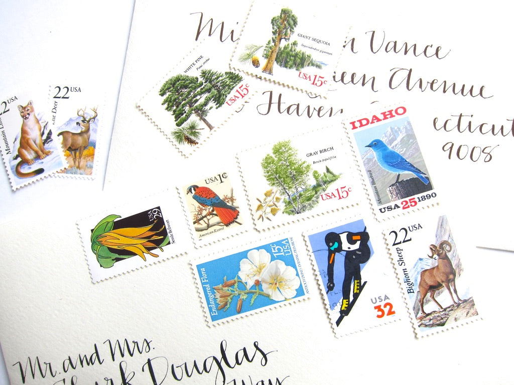 My vintage stamps are perfectly suitable for use as postage for mailing, as long as you use additional stamps to add up to the current postage rate. These beautiful nature postage stamps will add an enchanting touch to your Sun Valley Idaho or rustic mountain wedding invitations or greeting cards.