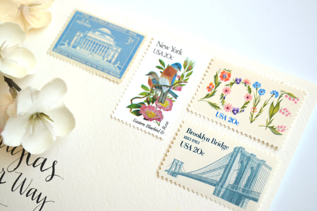My vintage stamps are perfectly suitable for use as postage for mailing, as long as you use additional stamps to add up to the current postage rate. These beautiful New York stamps will add an enchanting touch to your Upstate New York or NYC wedding invitations or greeting cards.