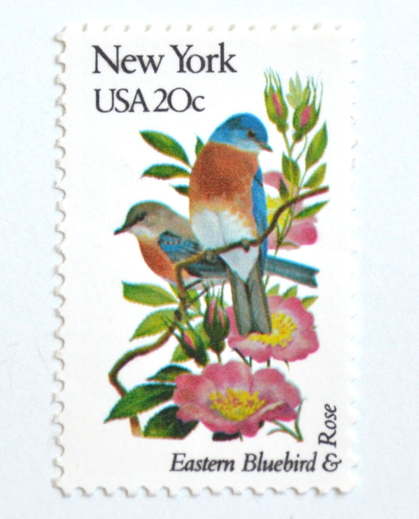 10 New York Postage Stamps Unused Vintage Bluebird & Rose Stamps for Mailing Invitations