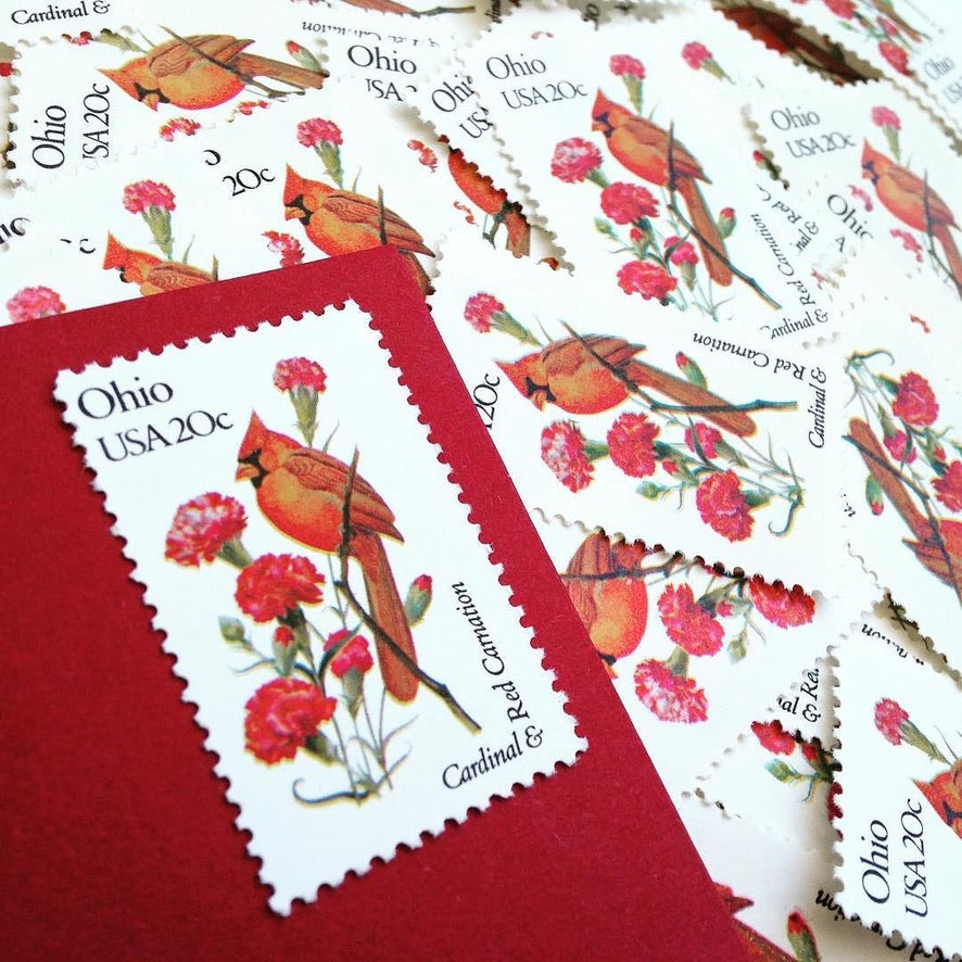 My vintage stamps are perfectly suitable for use as postage for mailing, as long as you use additional stamps to add up to the current postage rate. These beautiful nature postage stamps will add an enchanting touch to your Ohio or outdoor wedding invitations or cardinal greeting cards.