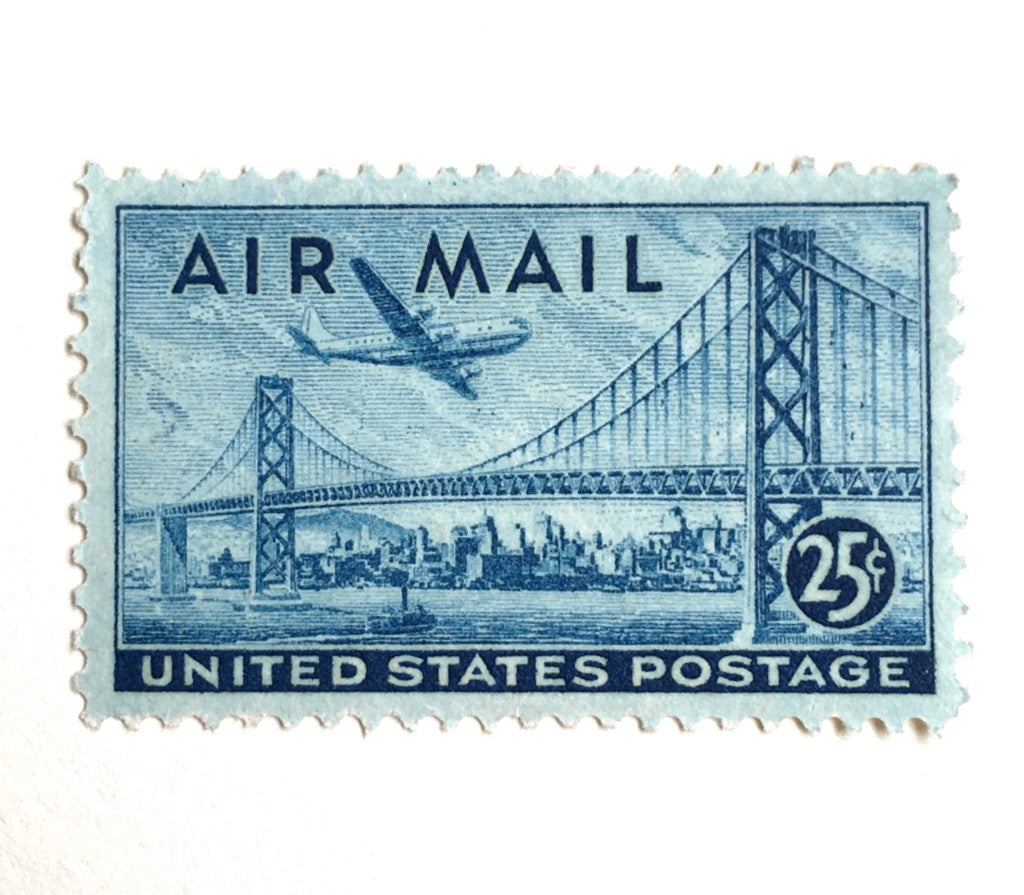 10 San Francisco Bay Bridge Stamps // Vintage 1946 San Francisco Bay Postage Stamps // 25 Cent Blue Postage Stamps for Mailing