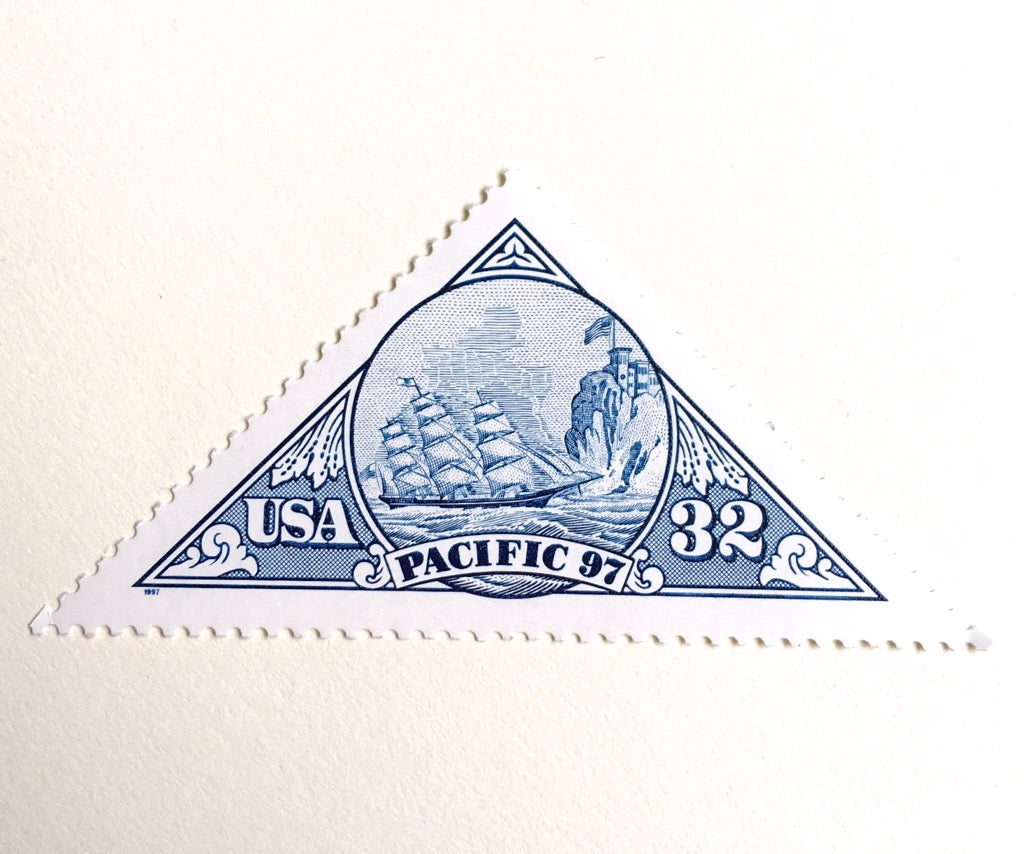 Includes 10 (TEN) 32¢ triangular-shaped nautical sailing ship stamps.