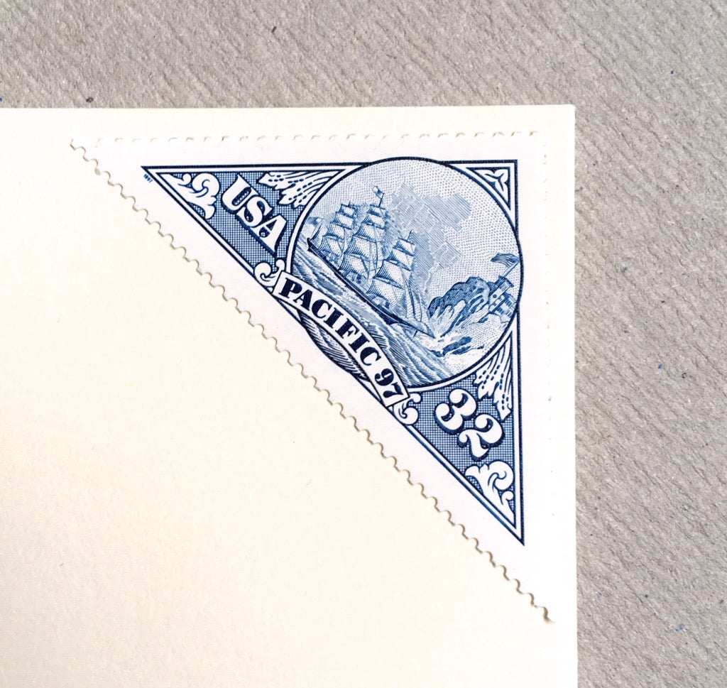 10 Vintage Blue Nautical Sailing Ship Stamps Triangular Postage Stamps Sea Sailing Vessel Stamps for Mailing Cards and Invitations