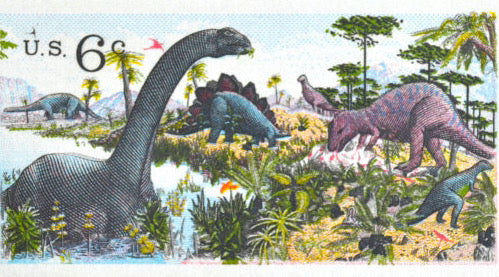 p.s. The dinosaur image on this stamp is actually based on a mural painted in the 1940s! It is almost 110 feet wide and took 4 years to paint! It hangs in the Peabody Museum of Natural History at Yale.