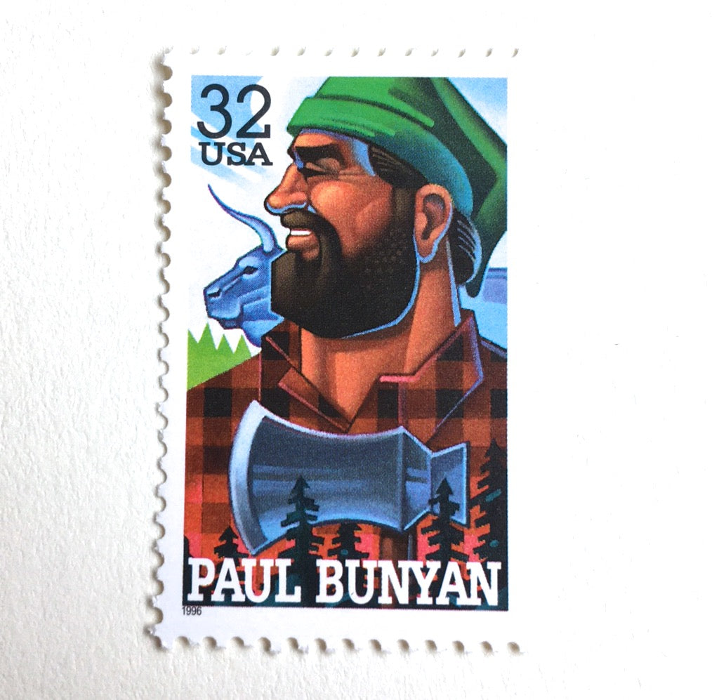 10 Paul Bunyan Postage Stamps Vintage Unused Lumberjack Stamps for Mailing