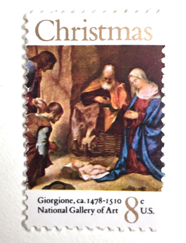Includes a total of 10 (TEN) unused 8¢ Nativity stamps.