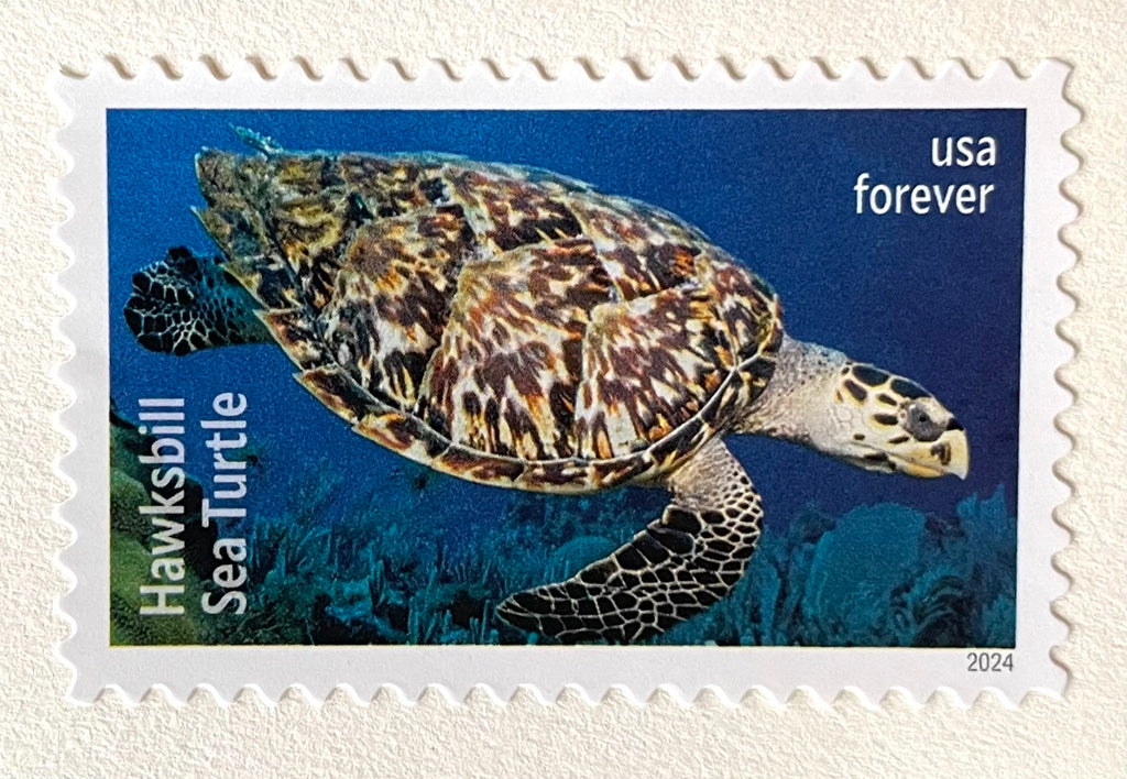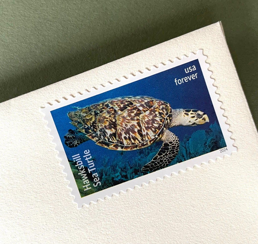 Includes a total of 10 (TEN) hawksbill sea turtle forever stamps.
