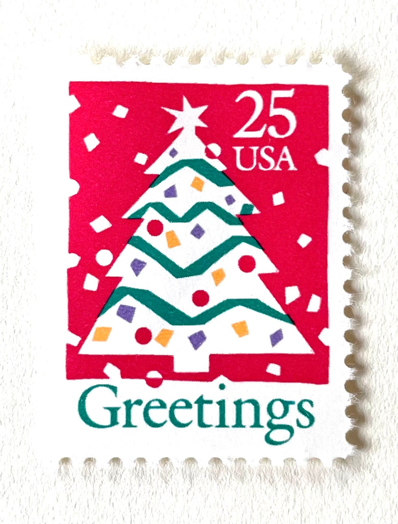 Includes a total of 10 (TEN) 25¢ White Christmas Tree stamps.