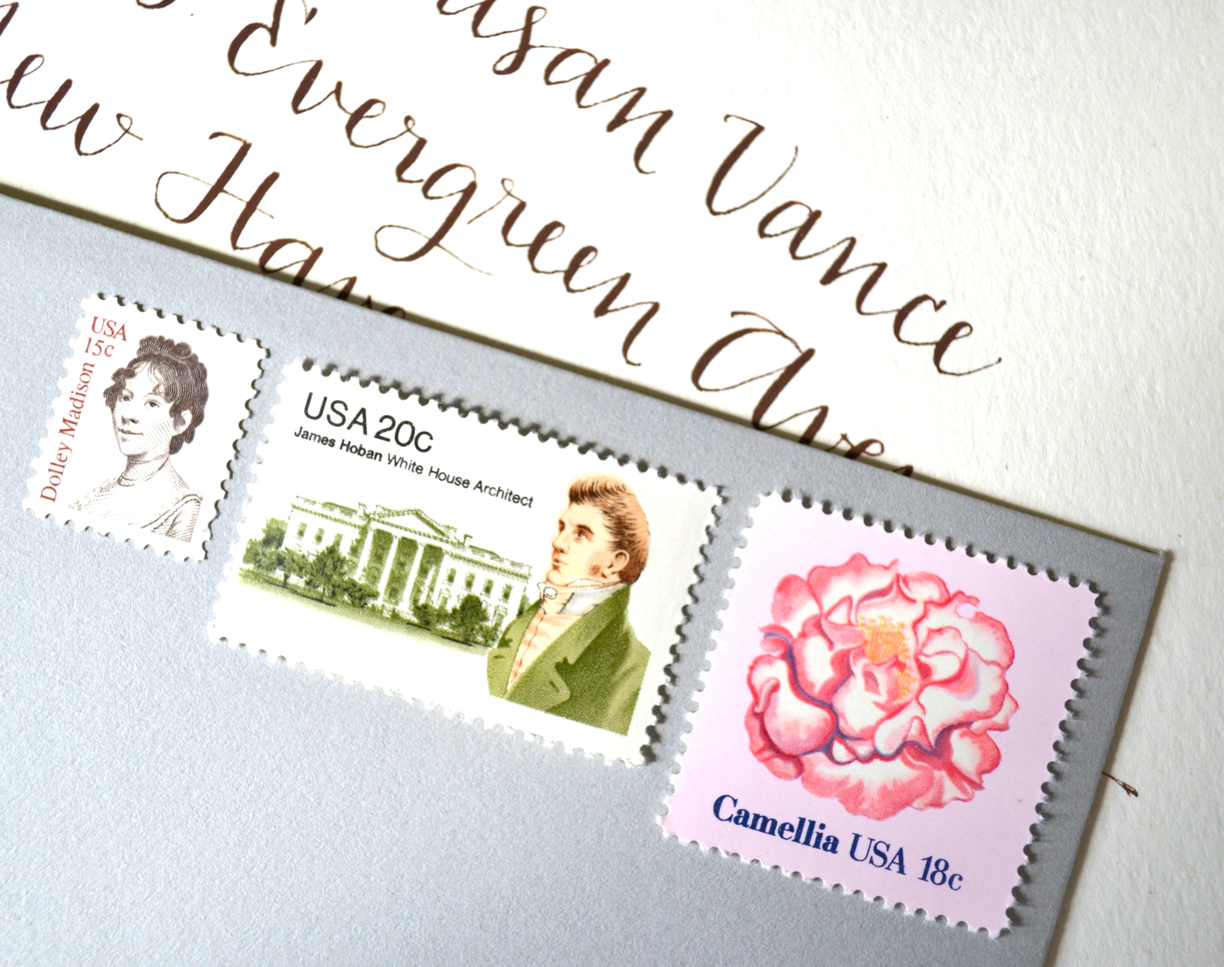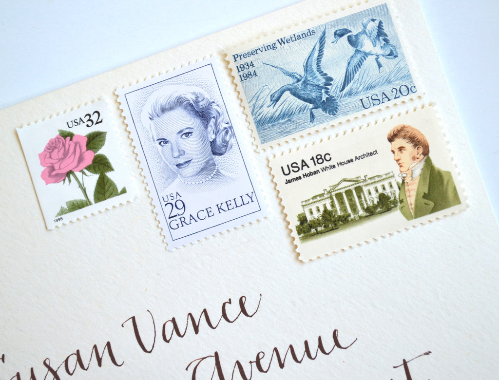 These vintage White House stamps are perfectly suitable for use as postage for mailing, as long as you use additional stamps to add up to the current postage rate. These beautiful green & white vintage stamps will add an enchanting touch to your Washington DC area wedding invitations or save the dates & cards.