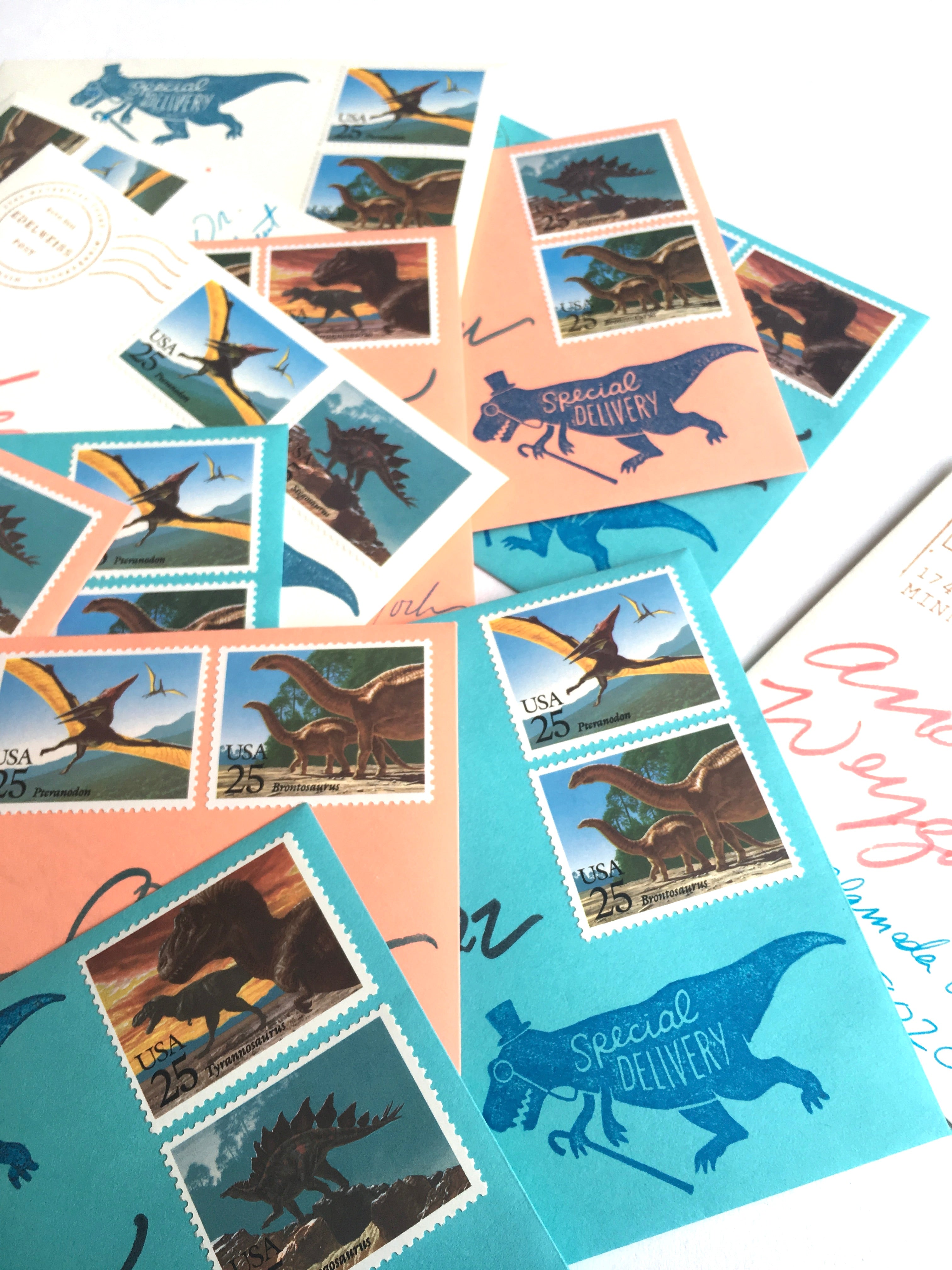These stamps are perfectly suitable for use as postage, as long as you use additional stamps to add up to the current postage rate. These exciting Jurassic era stamps will add a fun personalized touch to your greeting cards or invitations!