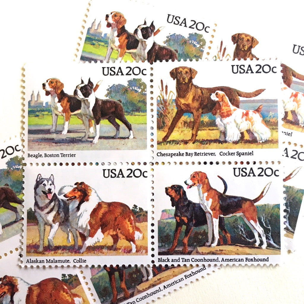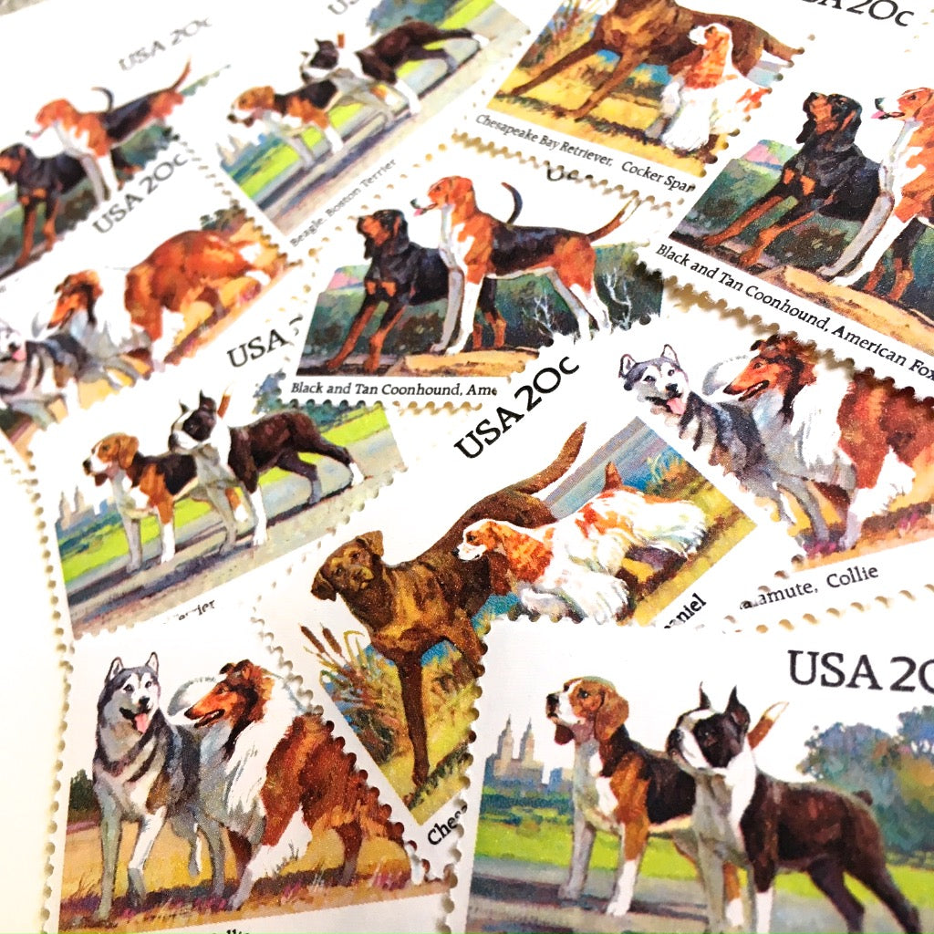 12 Vintage Dog Postage Stamps // 20 Cent Vintage Pet Dog Postage Stamps for Mailing