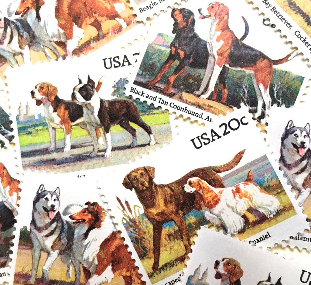 You'll receive 12 (TWELVE) 20¢ Vintage Dog stamps. (You will receive 3 of each of the four designs.)