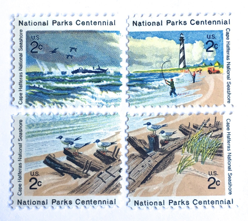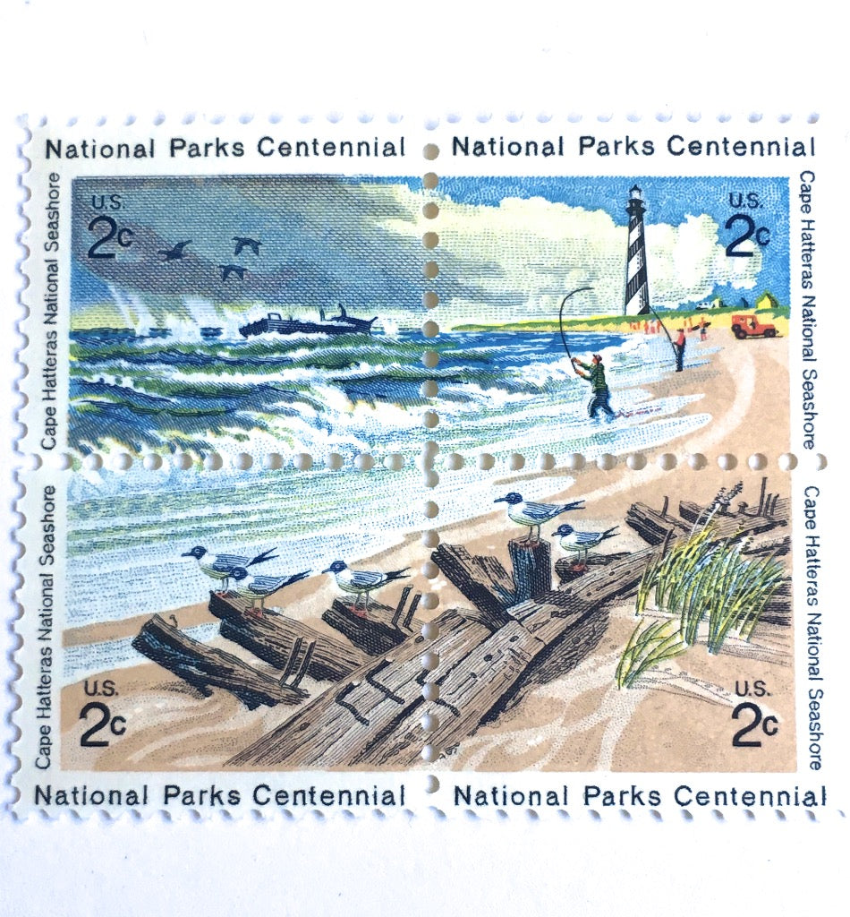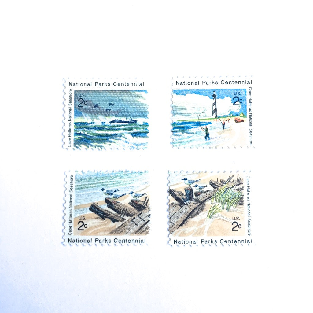 12 Vintage Seaside Ocean Stamps // 2 Cent Nautical Beach Lighthouse Postage Stamps for Mailing // Cape Hatteras National Seashore Stamps for Mailing