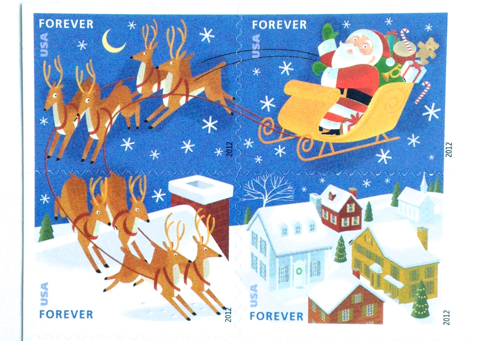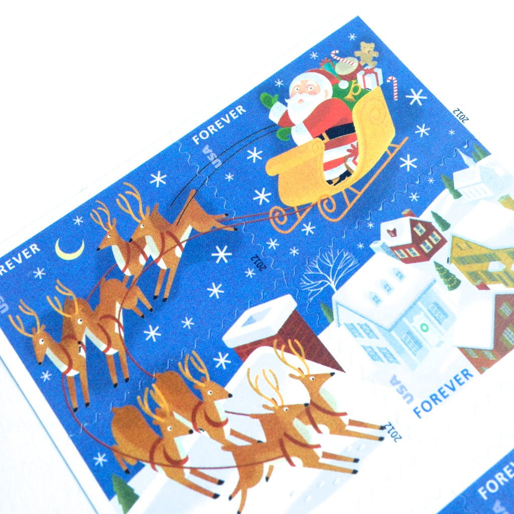 12 Christmas Forever Stamps Santa's Reindeer and Sleigh Twas Night Before Christmas Unused Stamps for Mailing Holiday Cards