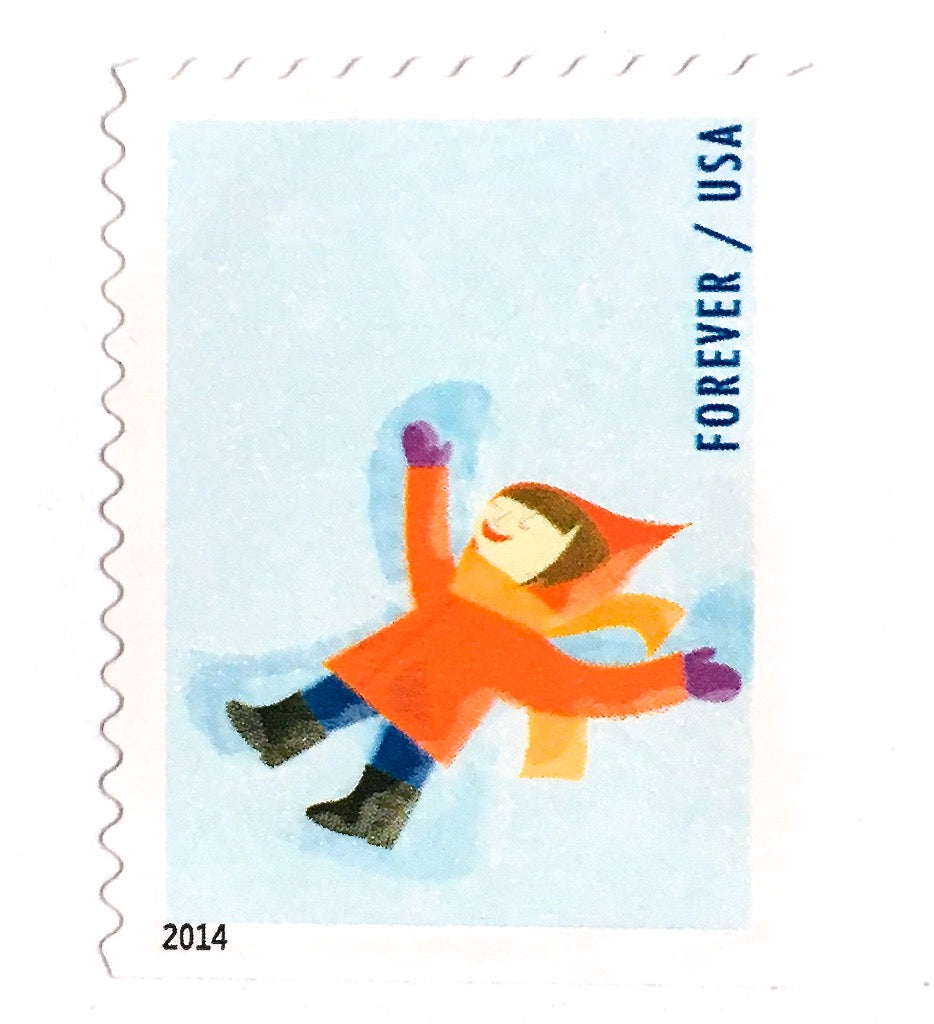 5 Snow Angel Forever Stamps // Child Playing in Snow // Christmas Snow Angel Winter Holiday Forever Stamps for Mailing