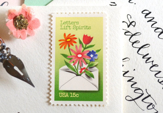 10 Vintage Postage Letter Writing Stamps Letters Lift Spirits 15 Cent Flower Envelope Stamps for Mailing