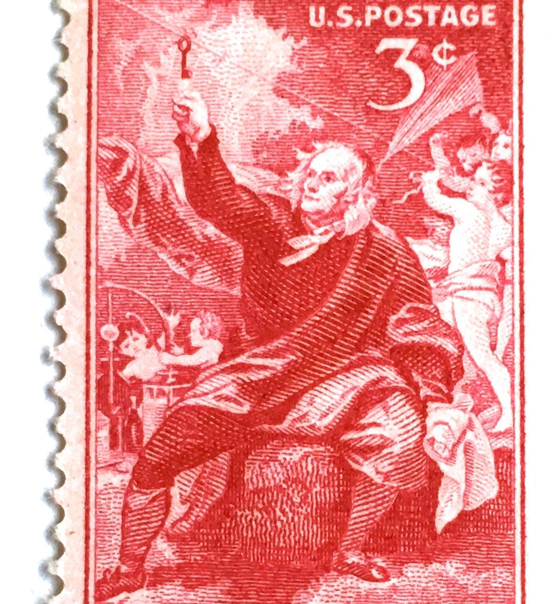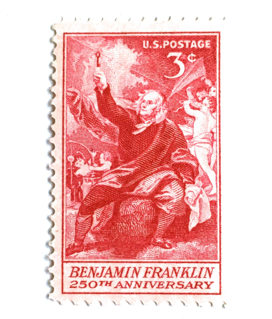 10 Benjamin Franklin Vintage Red Kite Postage Stamps for Mailing