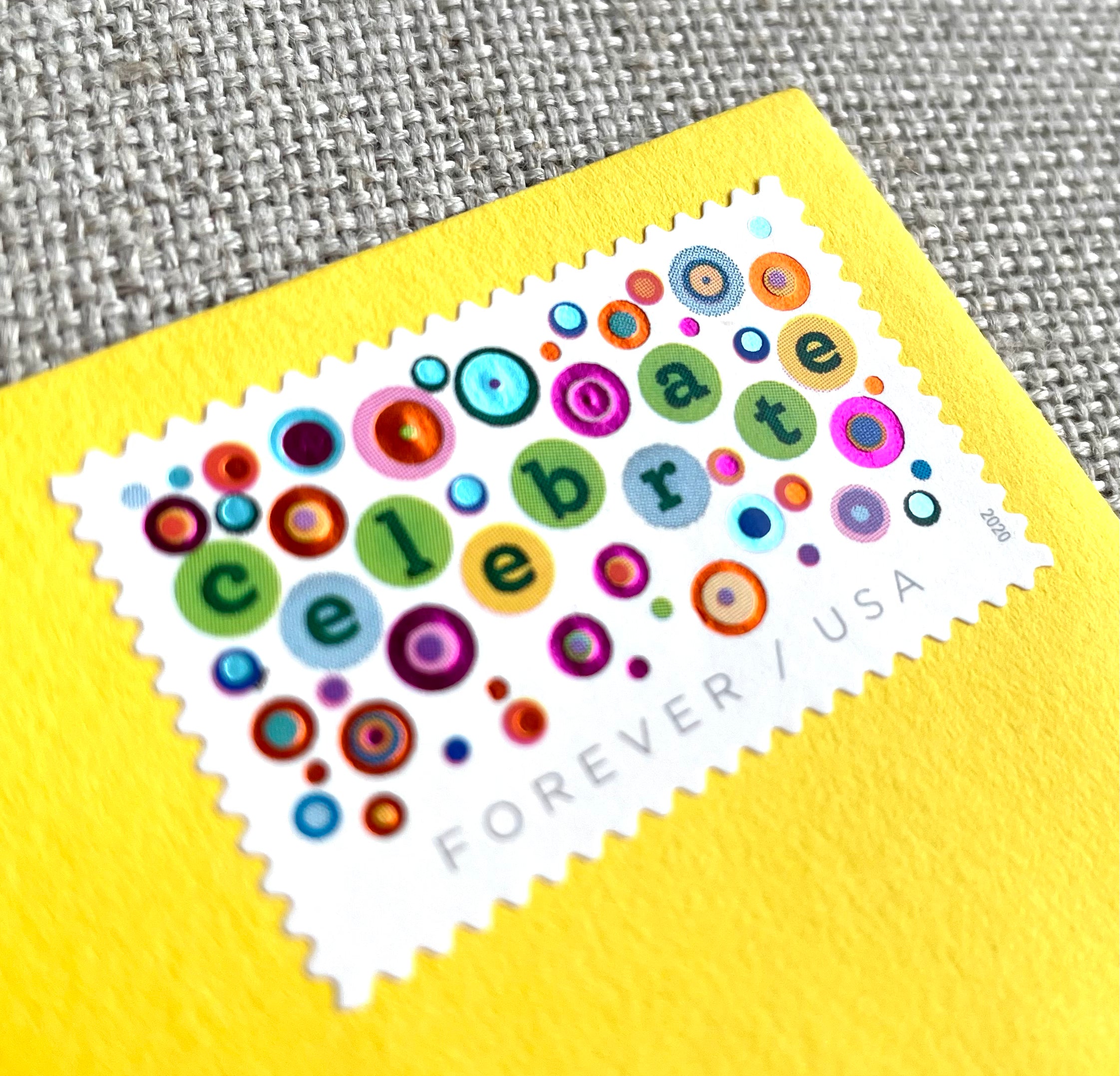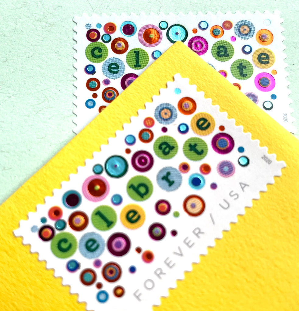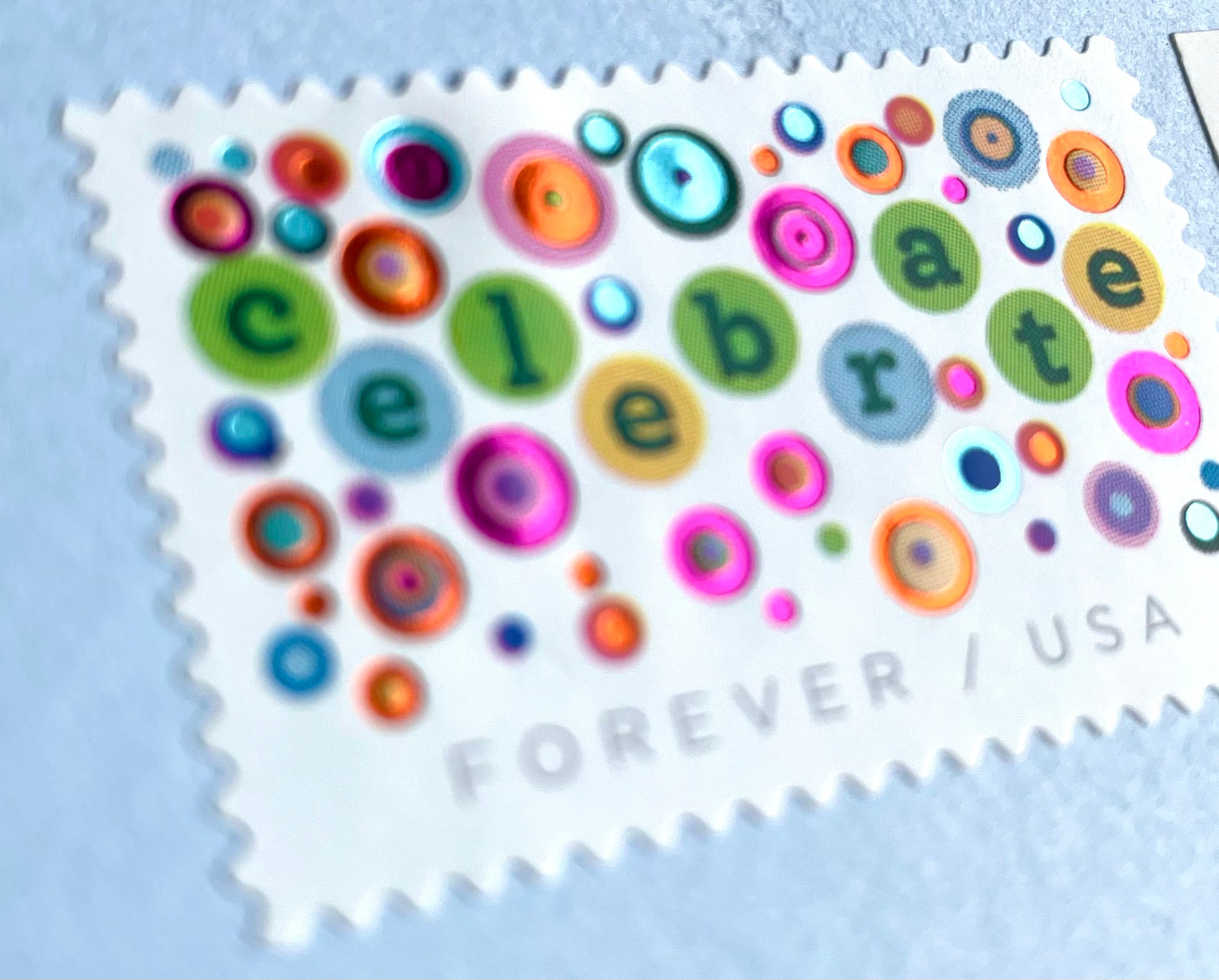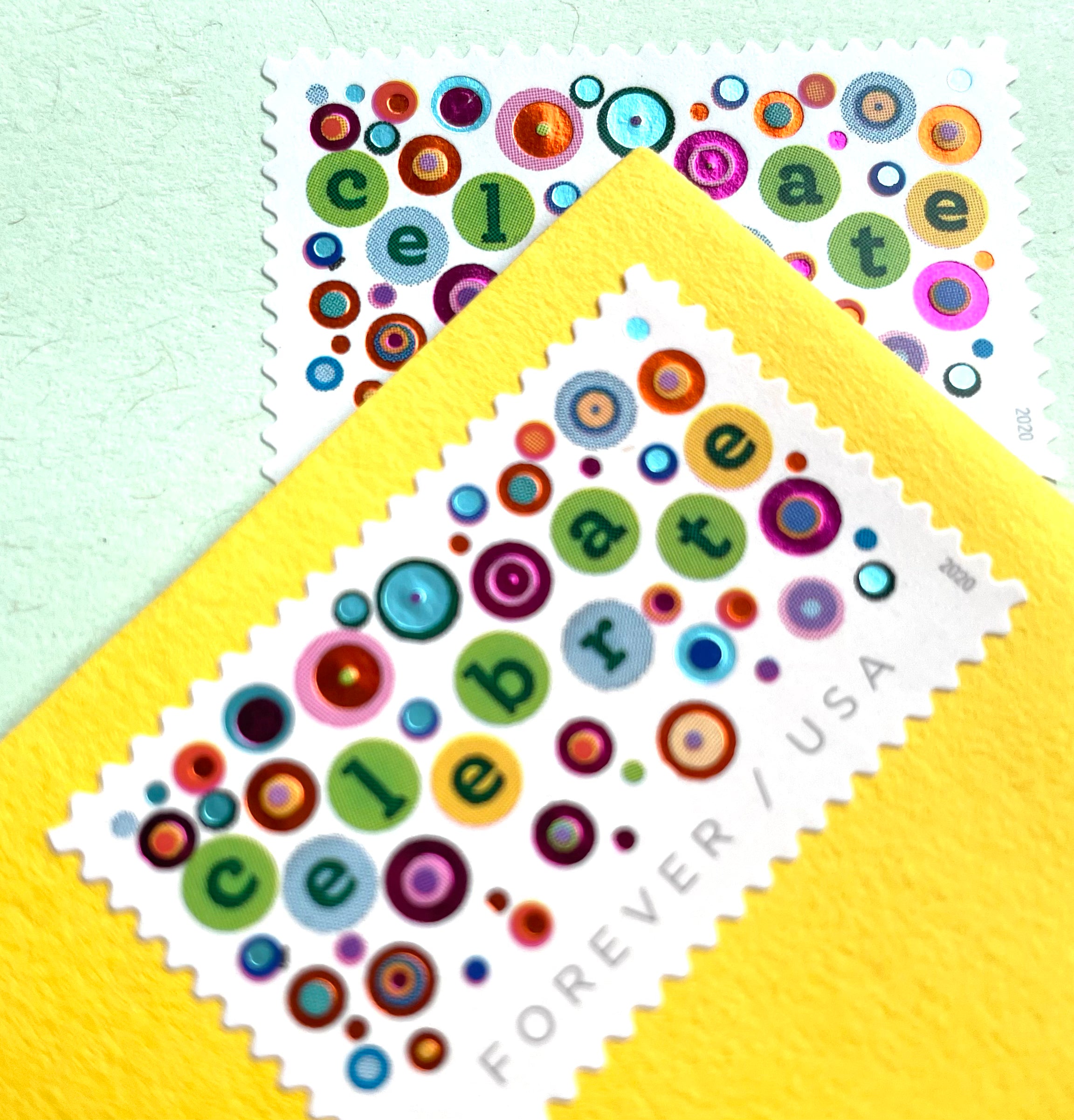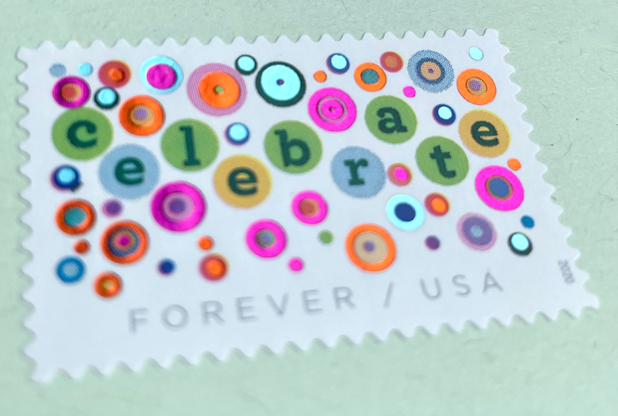 10 Sparkly Celebrate Forever Stamps Unused Colorful Confetti Postage Stamps for Mailing